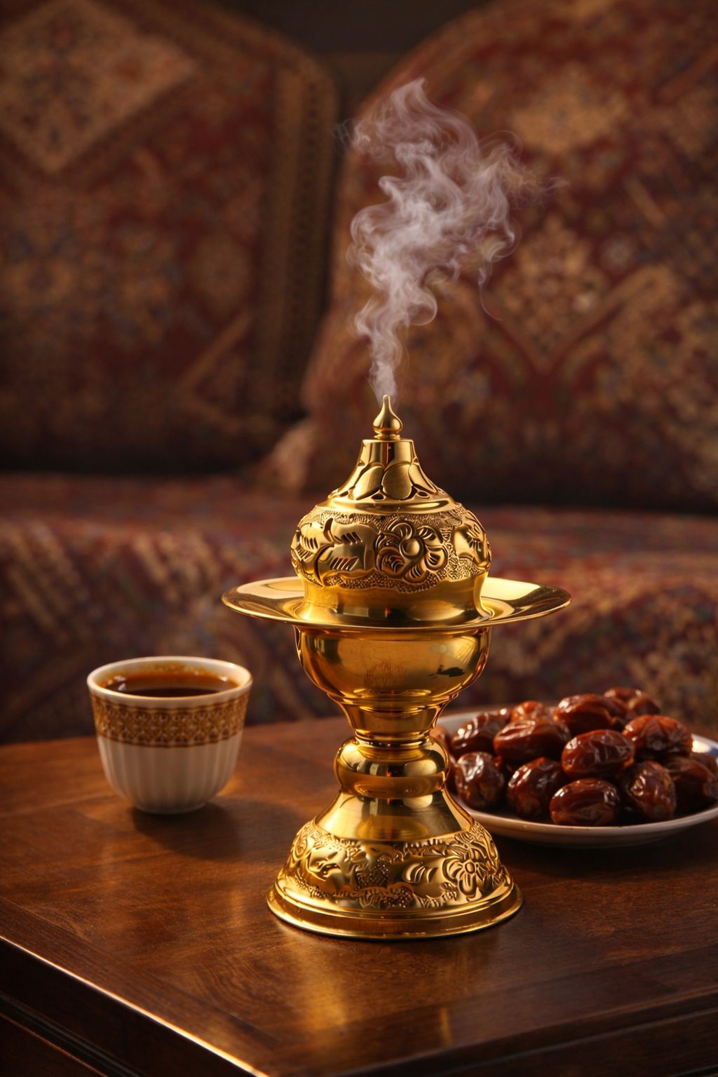 An elegant gold incense burner designed to fill your space with warmth and beautiful fragrance. Perfect for burning bakhoor or oud, it adds a timeless, luxurious touch to your home and creates a cozy atmosphere for gatherings and quiet moments alike.