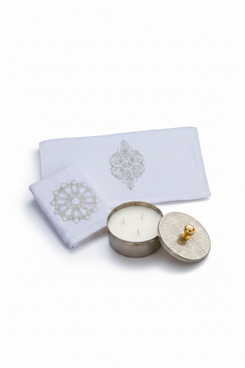 The Ramadan Package pairs a versatile towel set with a refillable candle, thoughtfully curated to bring comfort and atmosphere to the holy month. Created to support daily routines and peaceful evenings alike, the set blends practical use with a warm seasonal touch — equally suited for your own home or as a meaningful gift for loved ones.